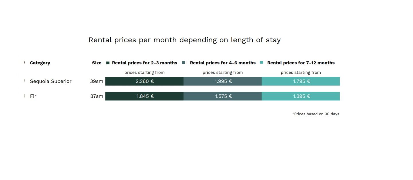 Starting at Rent per Month 1.795,-€*Fully equipped with the finest furniture and with it's 39 square meters, Sequoia Superior offers space to unwind with a separate bed room and living area with open kitchen.